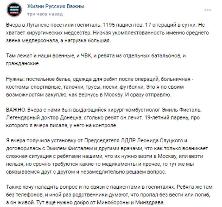 Градус влюбленности в Россию там не снизился, как бы нам ни рассказывали положительные блоггеры. Люди пишут о сострадании, о мести Украине, о нуждах сдавать кровь раненым.