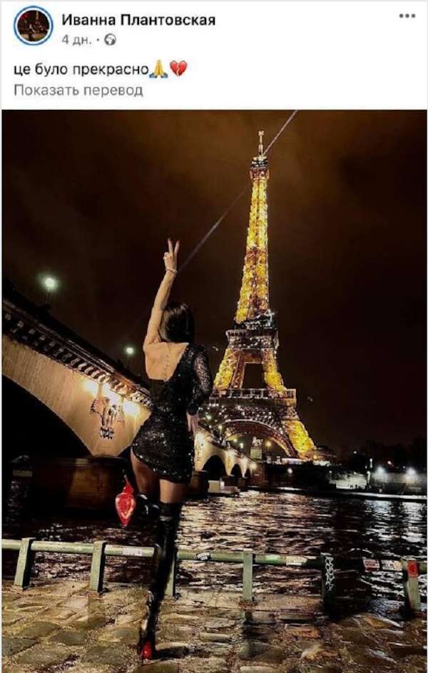 На фото в Париже в новогоднюю ночь (2022/2023) – Иванна Плантовская, военнослужащая, пресс-офицер Южного регионального управления Госпогранслужбы Украины. Лицо (теперь уже не только лицо) ГПСУ.