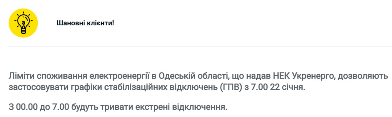 В Киеве, Одессе и Днепре - с утра плановые отключения света.
