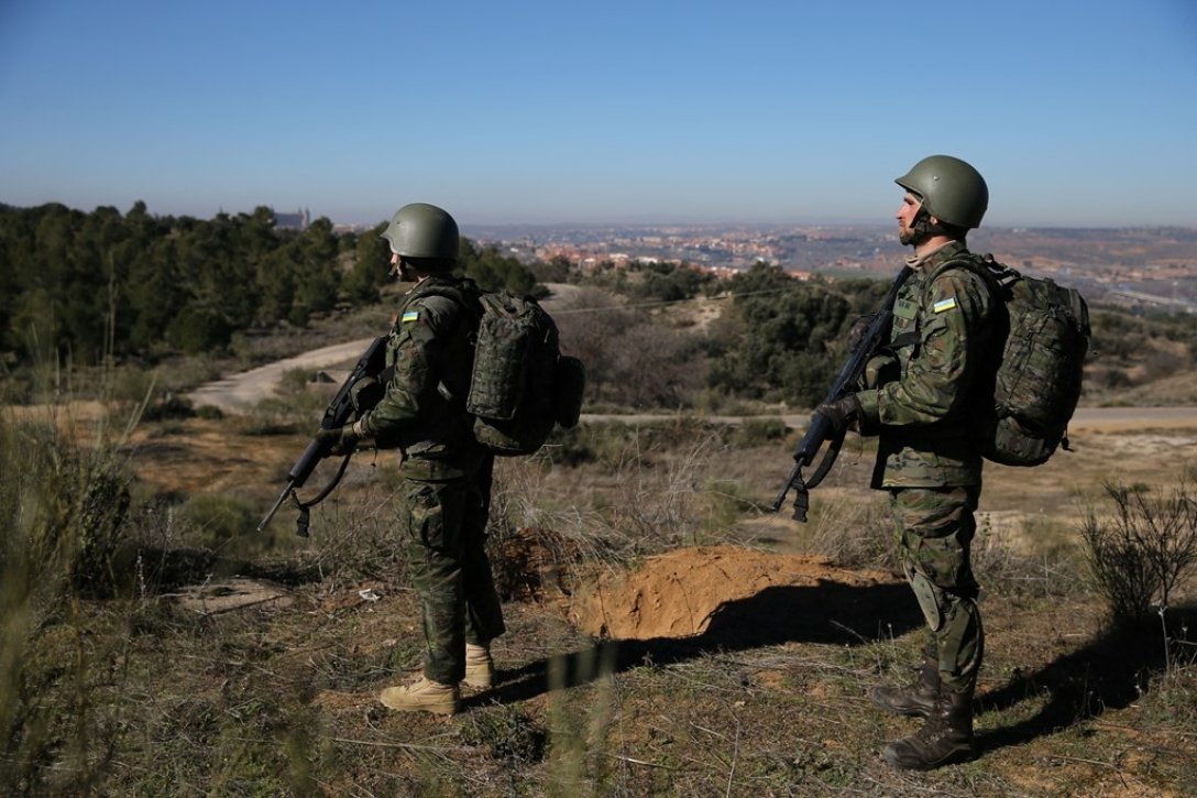 На опубликованных снимках инструкторы в академии пехотных войск в испанском Толедо обучают граждан Украины.