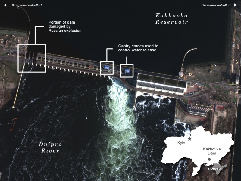 Согласно спутниковым фото россияне осушают огромное Каховское водохранилище, тем самым ставя под угрозу Запорожскую атомную станцию.