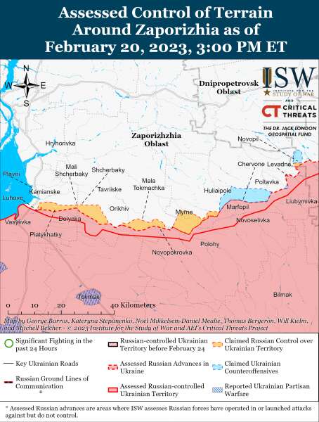19 и 20 февраля российские войска продолжали регулярные обстрелы западнее Гуляйполя, а также в Днепропетровской, Николаевской и Херсонской областях.