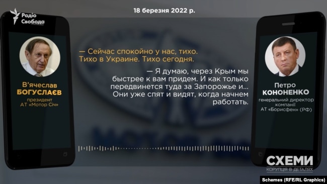 Была опубликована часть разговоров, свидетельствующих о сотрудничестве Богуслаева с российскими предприятиями, среди которых государственный концерн «Ростех».