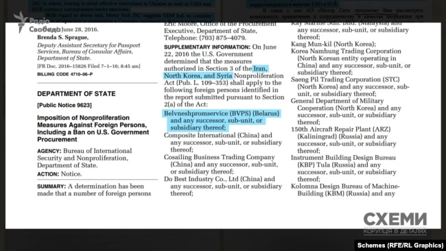 В США эта белорусская фирма уже давно под санкциями за торговлю с военно-промышленным комплексом Сирии и Ирана.