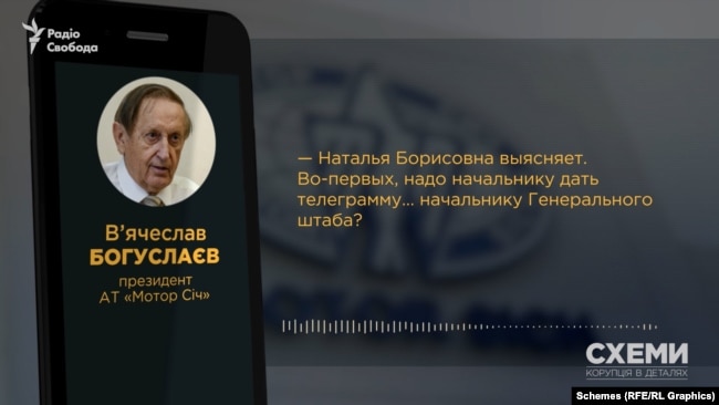 – Официально должность почетного президента «Мотор Сичи» не предусматривает каких-либо административно-хозяйственных функций. Управление предприятия какого-либо официально нет, – сказал журналистам «Схем» адвокат Богуслаева Руслан Волынец.