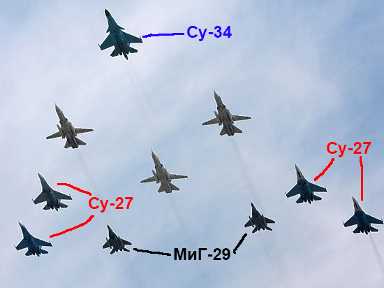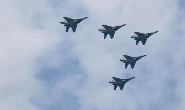 Повторимся, что при таком качестве снимка точно опознать модель невозможно. Все три сфотографированных истребителя вполне могут оказаться МиГ-29, который есть на вооружении ВВС Сирии. Можно даже привести пример снимка, где видно насколько похожи по форме друг на друга все три модели истребителя: