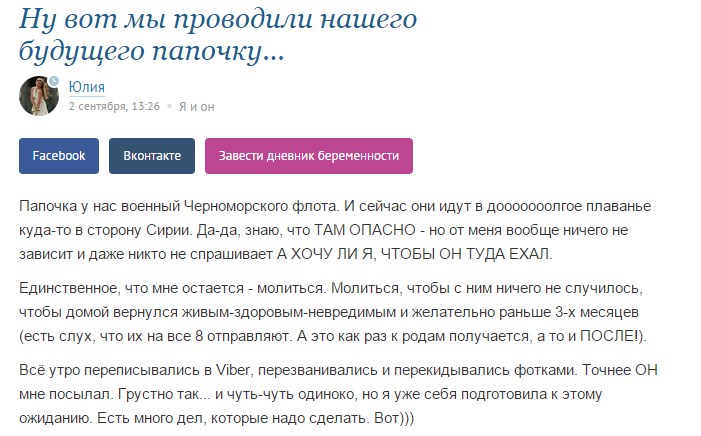 На днях нам прислали ссылку на один женский форум, на котором одна девушка жаловалась на то, что её мужа отправляют надолго (на срок от 3-х до 8-и месяцев) в Сирию и она переживает за него.