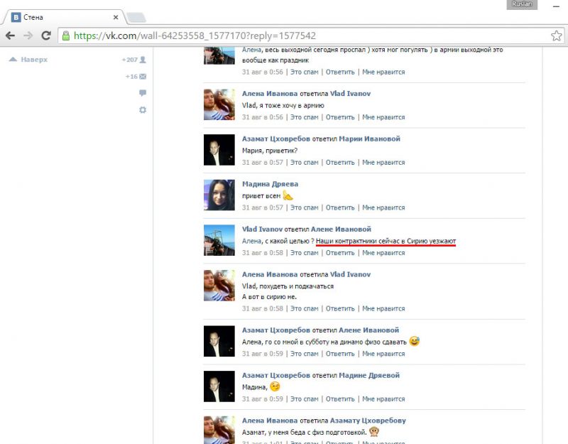 В одном из сообществ Владикавказа Вконтакте мы натолкнулись также на сообщение некоего Иванова Владислава, где он говорит что контрактников сейчас отправляют в Сирию: