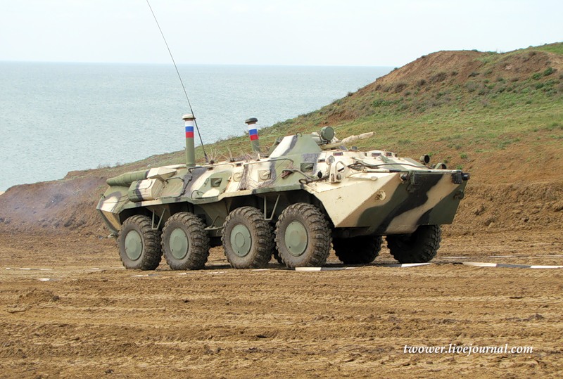 В нём все обратили внимание на пару моментов. Во-первых, это БТР-82А с30-мм пушкой 2А72 - редкая вещь, которую и в российских войсковых частях не так уж легко встретить.