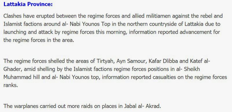 Другие сообщения SOHR о боях около Латакии за 23 августа: