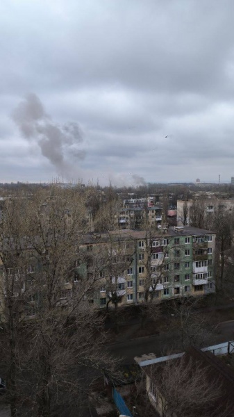 Во временно оккупированном Донецке сегодня громко. Местные сообщают о "прилете" в районе детской больницы, нам городом виднеется густой столб дыма.