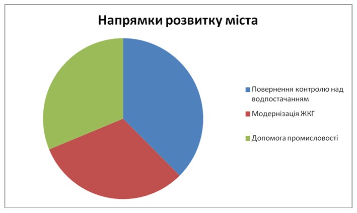 По-перше, мер переорієнтував міський бюджет на соціальний напрямок. Додаткові кошти – десятки мільйонів гривень – було направлено на освіту, охорону здоров’я, фізичне виховання та спорт. 90% шкіл було під’єднано до мережі інтернет, споруджено 9 інтернет-бібліотек. 29 навчальних закладів отримали мультимедійну техніку та успішно використовують її у навчальному процесі.