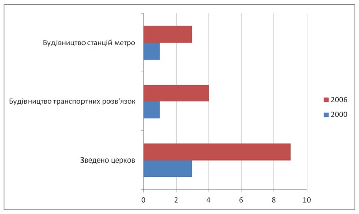 По-друге, постійно збільшувалось фінансування будівництва та реконструкції об’єктів соціально-культурної сфери та інфраструктури міста.