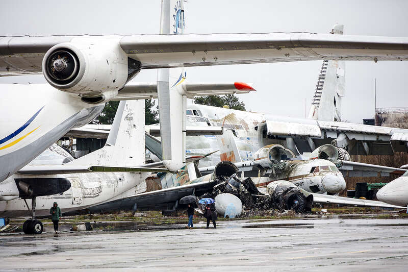 Россияне захватили базу в Гостомеле и поставили свою технику прямо в ангары с самолетами. В результате боев уничтожены три самолета: Ан-225 "Мрия", Ан-74 и Ан-26. Повреждены еще пять: Ан-12, Ан-22 "Антей", Ан-28, Ан-132D и Ан-124 "Руслан".