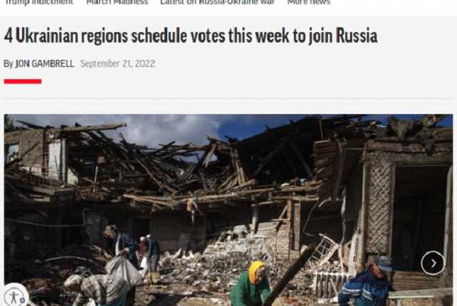 Например, известное информагентство Associated Press 21 сентября опубликовало «сенсационную» новость под заголовком: «4 региона Украины планируют на этой неделе голосовать за присоединение к России» (4 Ukrainian regions schedule votes this week to join Russia).
