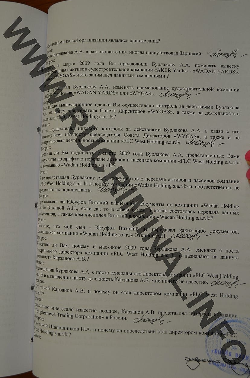 Среди других заказных убийств банды на слушаниях рассматривали эпизод с расстрелом российского бизнесмена Андрея Бурлакова , причиной чего стал конфликт вокруг контроля над европейскими судостроительными верфями Wadan Yards , реальным владельцем которых мог быть именно Юсуфов. В ходе расследования убийства своего подельника Андрея Бурлакова, министр Юсуфов сообщил, что с Бурлаковым его познакомил в мае 2008 именно Алексей Коротаев, которого он знал как генерала СВР.
