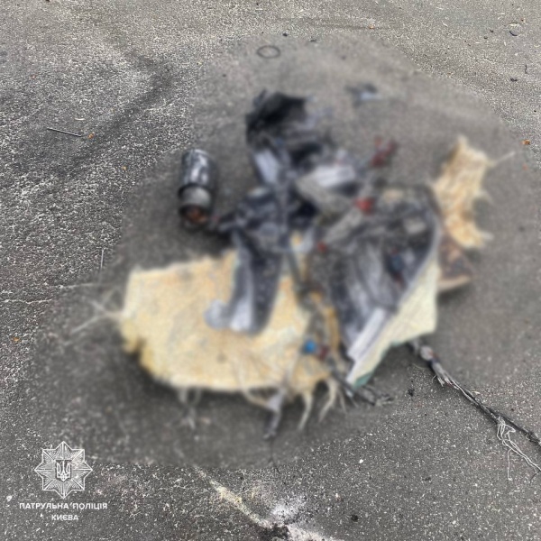 В Киеве стражи порядка зафиксировали последствия ночной атаки россиян. Они показали фото обломков воздушных целей, сбитых нашими бойцами.