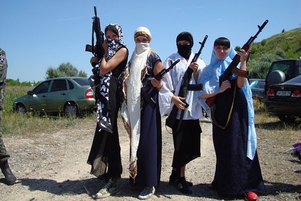 Первое, что бросилось в глаза – жена Губарева любит пострелять. Правда, до кровавых событий в Донецке, делала она это только в рамках игры в страйкбол. Неплохое и довольно обычное развлечение для молодых людей, вот только Екатерина почему-то на эти игры одевалась шахидкой…