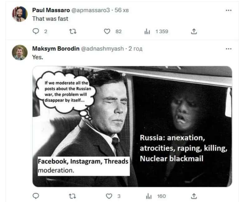 Теги: Напад Росії на УкраїнуВойнаВійнаThreadsTwitterСоцсетисоцмережіИлон МаскЦукерберг МаркMeta
