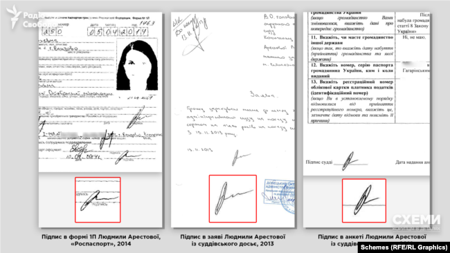 В 2019 году Арестова заполняла аналогичную анкету, когда подавалась на должность судьи Окружного административного суда Киева. Тогда она снова не сообщила о российском документе.