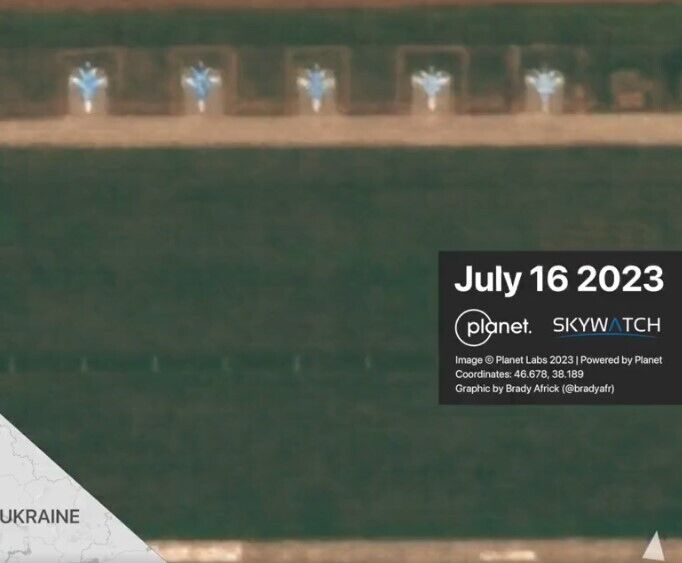 На местах стоянки самолетов в России появились рисунки, очень напоминающие истребители, произведенные компанией "Сухой". Спутниковые снимки, сделанные 26 июня и 16 июля, наглядно демонстрируют процесс появления нарисованной авиации.