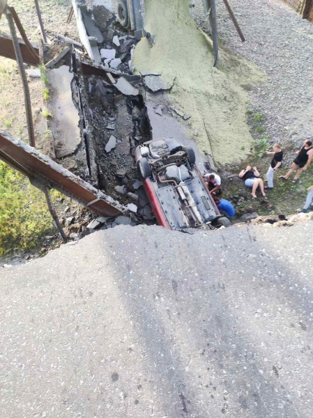 В результате разрушения моста в реку Тересва упали 2 транспортных средства: один грузовой и один легковой автомобили.