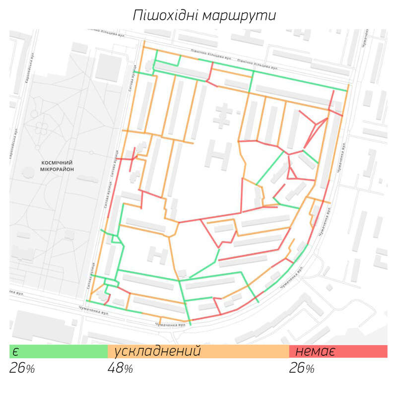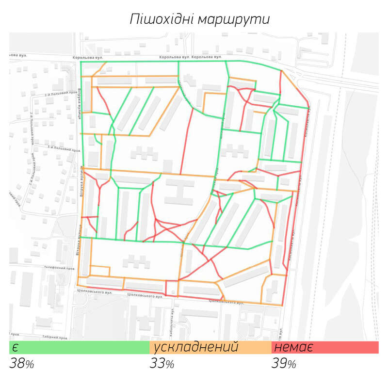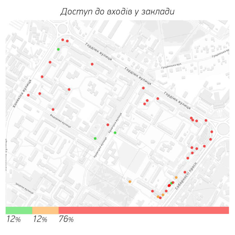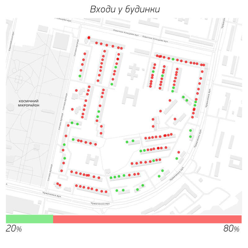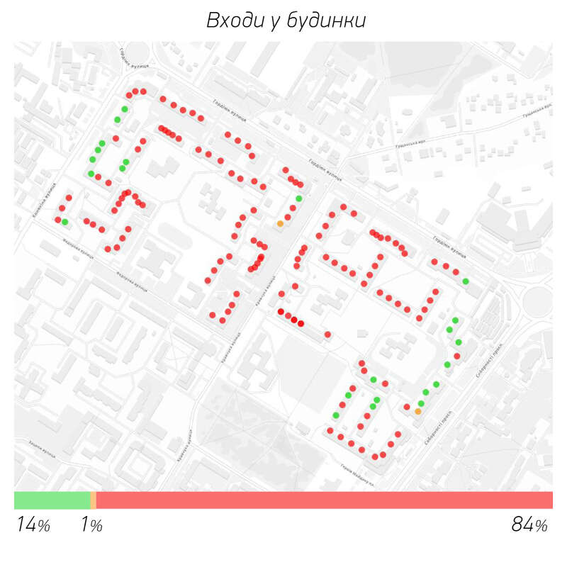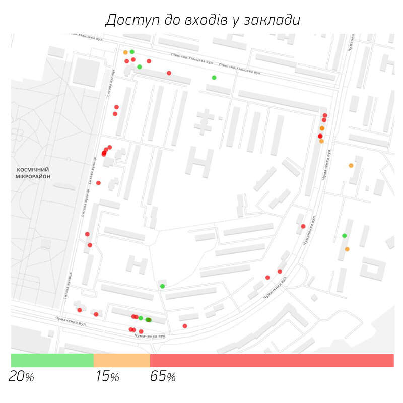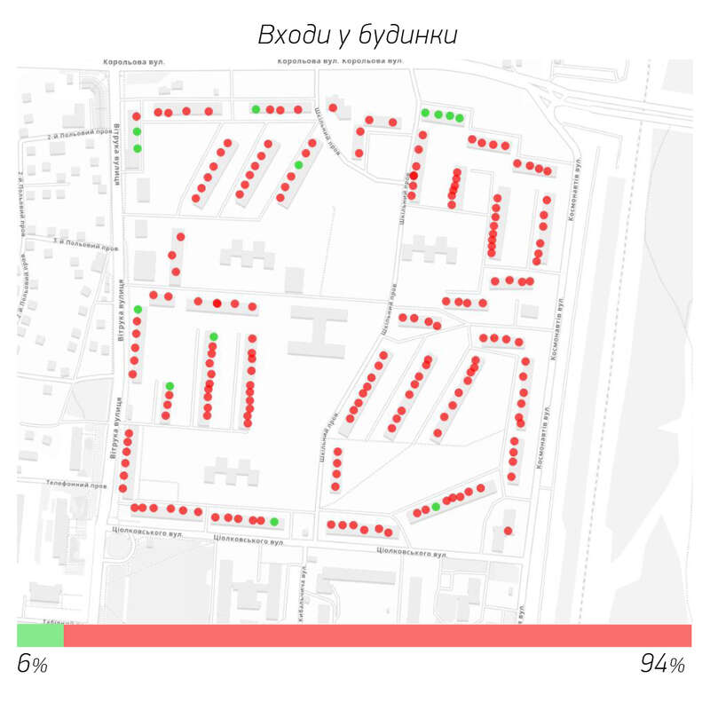ТЕКСТЫ исследовали четыре типовых жилых микрорайона в четырех городах (Киеве, Запорожье, Луцке и Житомире), чтобы зафиксировать препятствия, перед которыми предстают люди, передвигающиеся на колесных креслах.