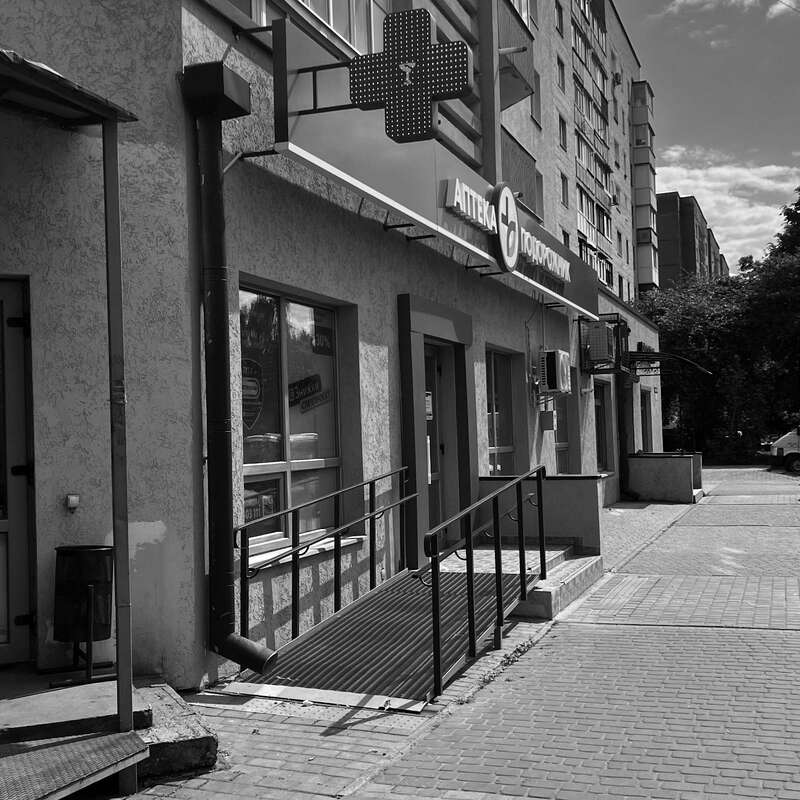 Еще одна аптека, с пандусом, которым невозможно подняться без посторонней помощи