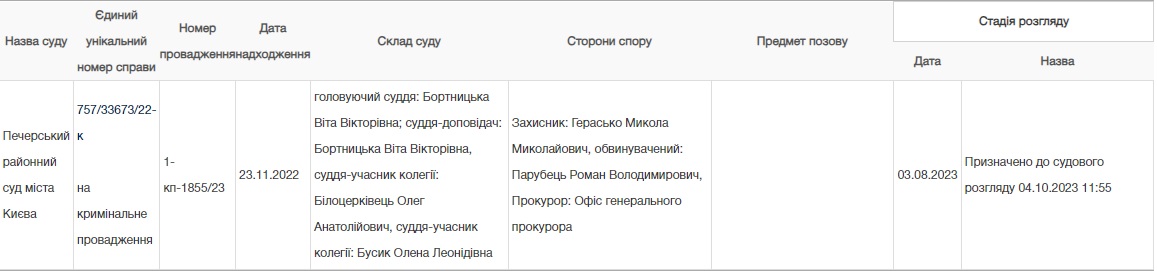 Из материалов суда следует: обвинительный акт в отношении достойника по этому делу еще осенью прошлого года был направлен в Печерский районный суд Киева. Рассмотрение производства (очевидно, в заочном режиме) продолжается и поныне.