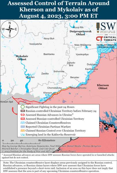 Российские источники утверждали, что украинские войска вели наступательные действия вдоль линии Купянск-Сватово, 4 августа.