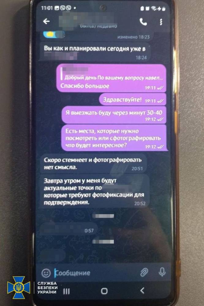 Сотрудники СБУ задержали злоумышленницу во время контрдиверсионных мер, когда она осуществляла доразведку местности вблизи одного из украинских военных объектов. По данным следствия, российским агентом оказалась местная жительница, которая имела пророссийские взгляды и хотела «подработать» за счет сотрудничества с вражеской спецслужбой. Для конспирации постоянно меняла мобильные номера и телефоны.