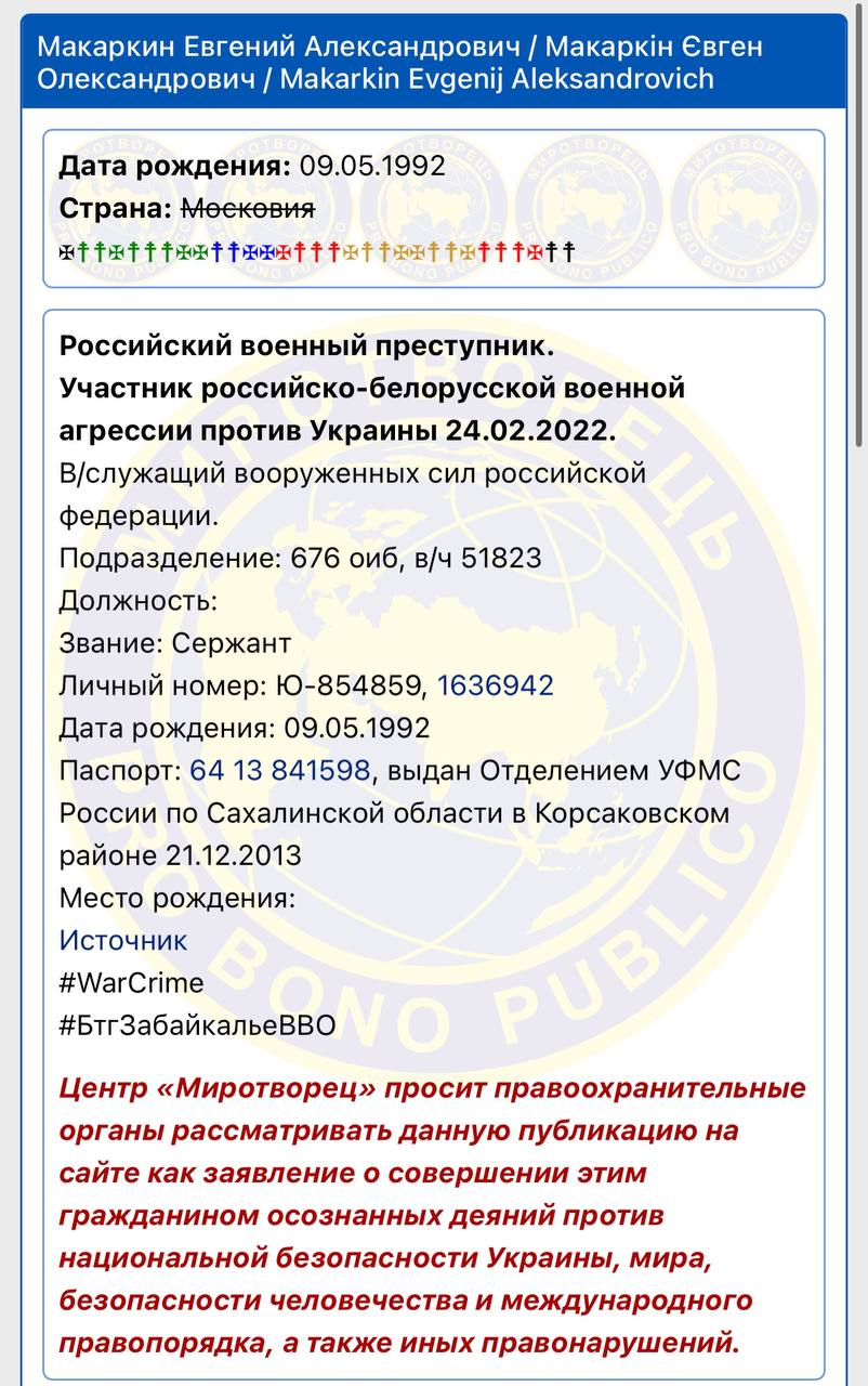 Евгений Макарян – оккупант ЧВК "Вагнер", находится в списках сайта "Миротворец". Александр Тотмин – член ЧВК "Вагнер". По данным украинского сайта "Миротворец", воевал в Судане.