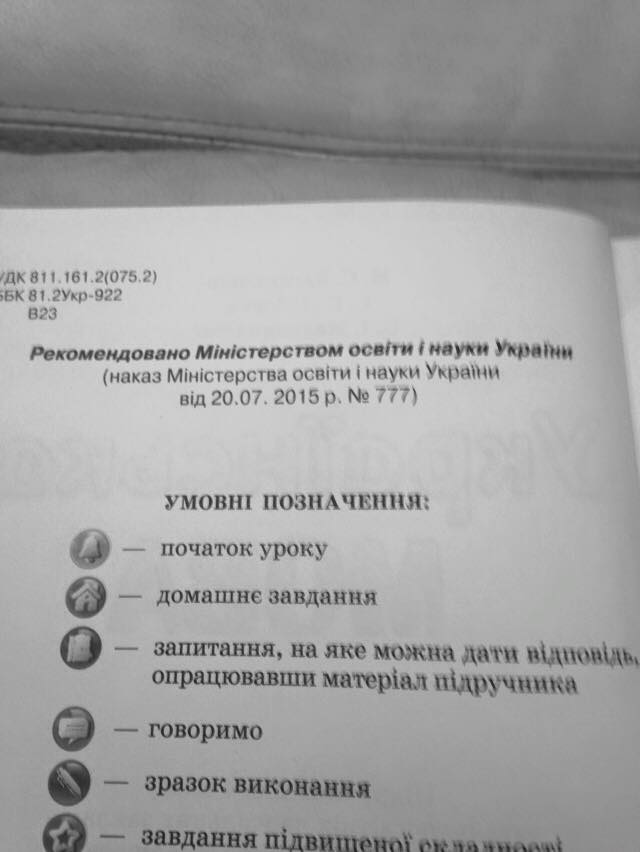 “Это учебники моего племянника, ученика 4-го класса Киевской школы # 92. Купленные за сданные родителями 200 грн. Гриф Минобразования от 20 июля 2015 года издательств "Просвещение" и "Генезис". Это те учебники, которые запрещено продавать, пока они не напечатаны за средства госбюджета” - написала она.