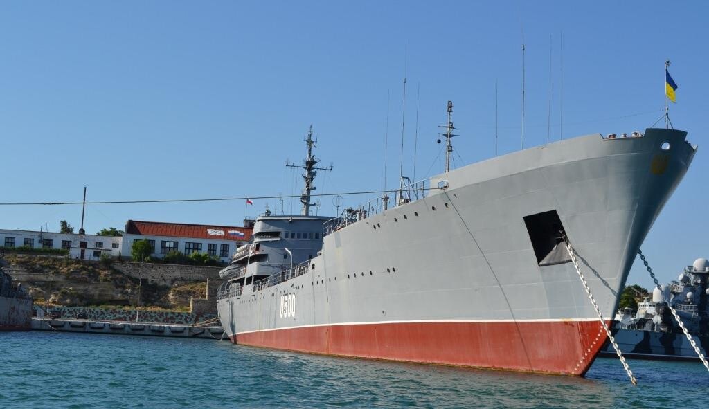 Боевая история судна "Донбасс" началась 20 марта 2014 года, когда во время оккупации Крыма российские военные захватили судно. В то время это был корабль управления. Впрочем, 18 апреля того же года судно вернулось под украинский флаг. Его переправили в Одессу. В 2018-м корабль управления превратили в поисково-спасательное судно в подчинении военной части А 0373, базировавшейся в Бердянске. По состоянию на 24 февраля 2022 г. оно стояло в торговом порту Мариуполя, осуществляло противоподводную диверсионную оборону.