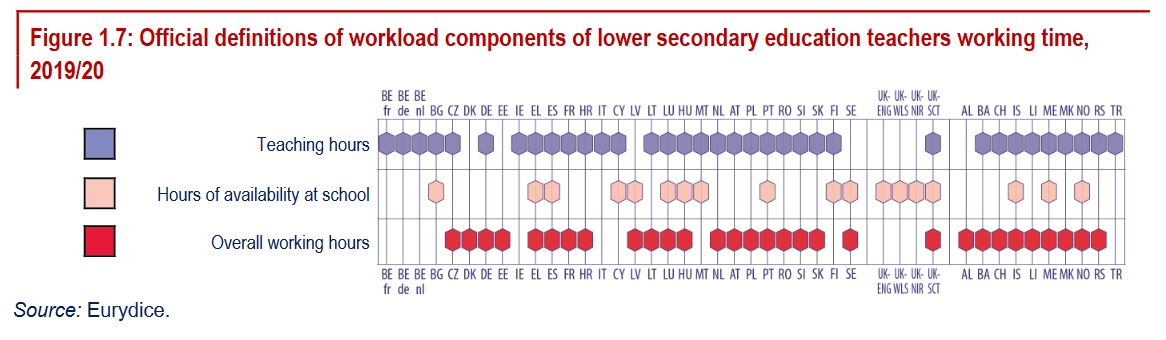 Данные этого исследования подтверждают: далеко не все страны регламентируют всеобщее время работы учителя. В Израиле, например, общее рабочее время равно времени пребывания в школе, то есть педагог или педагог в теории должны успевать выполнять все задачи на рабочем месте.
