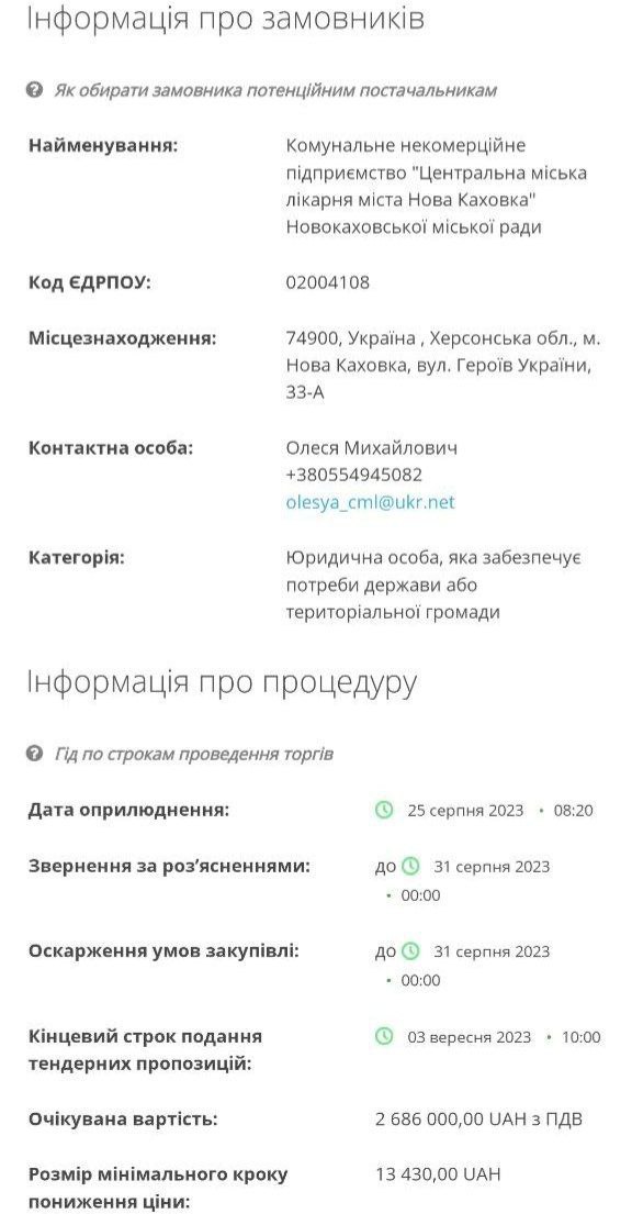 Горсовет Новой Каховки закупил через систему госзакупок Prozorro аппарат УЗИ для центральной городской больницы спустя полтора года после начала оккупации города.