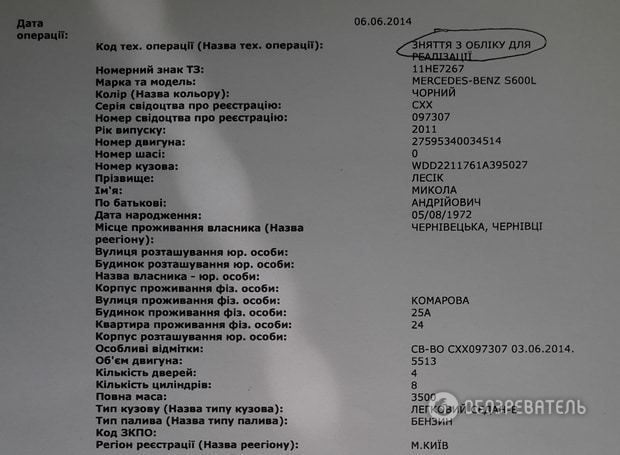 3 июня 2014 года - смена собственника, автомобиль регистрируется на нового хозяина - Николая Андреевича Лесика из Черновцов, новый госномер - СЕ 3059 ВС. В интернете есть информация только об одном человеке с такими данными - бывшем футболисте из  Черновцов, обладателе, помимо украинского, еще и молдавского паспорта. И уже через три дня г-н Лесик снимает автомобиль с учета, получив транзитный номер 11 НЕ 7267.