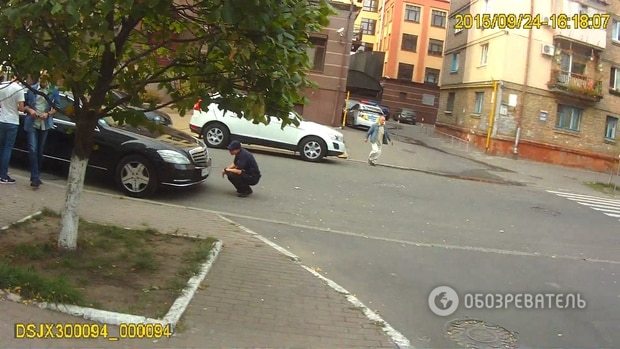 Потом уже появились полицейские, зафиксировавшие происходящее на улице на видеокамеры. Кстати будет сказано, полицейские нашли под решеткой автомобиля мигалки, установленные соратниками Януковича, но так и не демонтированные соратниками Тимошенко.