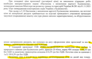 Кроме того, «Николаевгорстрой» учел песок естественный рядовой по 1656 грн/куб. м. При этом другой подрядчик «Одессаспецэнерго» указал в смете песок по 365 грн/куб м, что в 3,5 раза дешевле. А «Николаевводоканал» в этот период закупал песок по 400 грн/т, что в пересчете ориентировочно равняется 572 грн/куб. м. То есть, по крайней мере, в 2,5 раза дешевле.