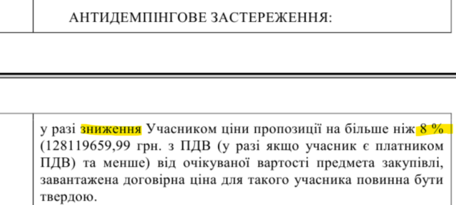 Еще три процедуры на 209 млн грн сейчас заблокированы в Антимонопольном комитете из-за жалобы более дешевого участника, которого заказчик отклонил благодаря своей «заточке» (подробнее ниже в "Антитрастный беспредел от ОГА").