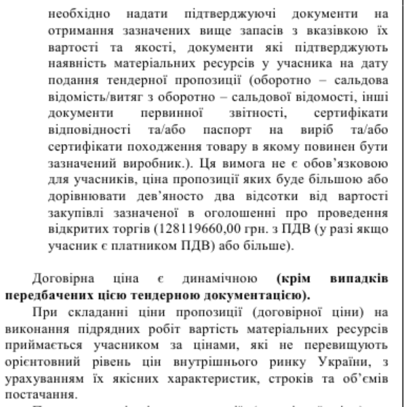 Более того. Заказчик требовал, чтобы участник с более чем 8% скидкой уже на день участия в торгах (т.е. даже до победы и заключения контракта) уже имел документальные подтверждения от производителей стройматериалов или дилеров о том, что эта фирма имеет необходимые для строительства водопровода стройматериалы в соответствующей количеству и по заявленной цене. От участников, которые не снижали бы так сильно установленную Николаевской ОГА ожидаемую стоимость.