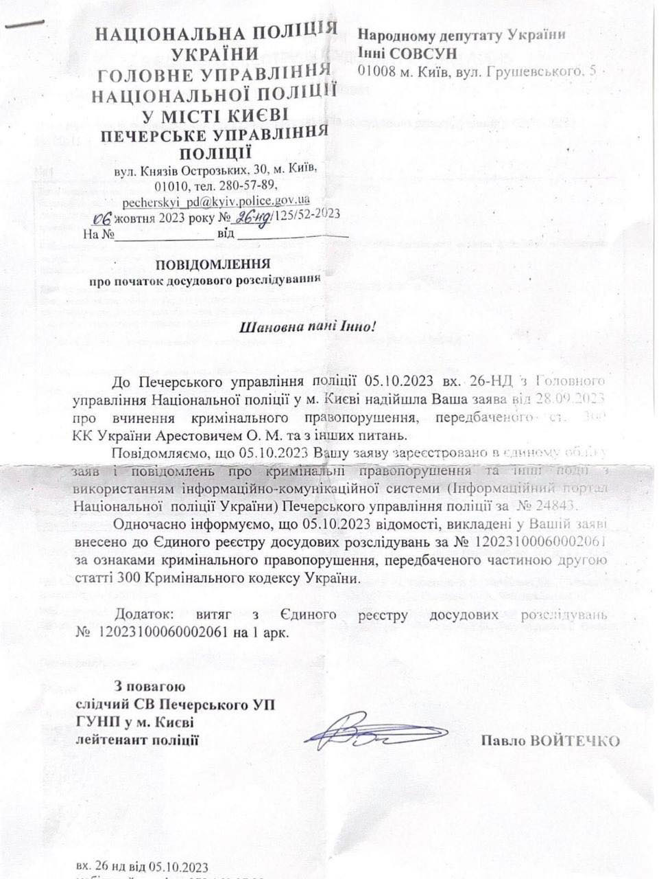 Уголовное производство по статье 300 УК Украины (пропаганда насилия и дискриминации) открыто по заявлению нардепа от Голоса Инны Совсун.