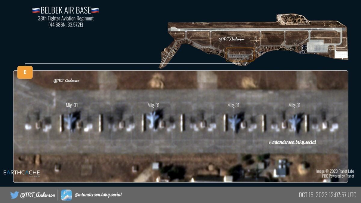 Из спутниковых снимков стало известно, что Россия разместила четыре истребителя МиГ-31 на аэродроме Бельбек в Севастополе.
