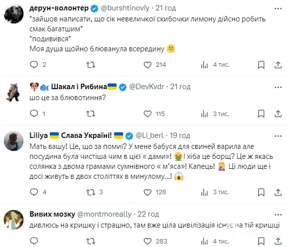 "Это что за помои? У меня бабушка для свиней варила, но посуда была чище, чем у этой дамы!" "Какое все чистое..." "Смотрю на крышку и страшно: там уже целая цивилизация существует", "Какой ужас", – пишут в сети.