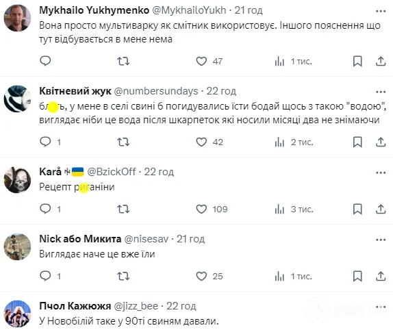 Многие отметили, что даже свиньям такое не сварили бы. Также интернет-комментаторы обратили внимание на состояние кухни российской "хозяйки".