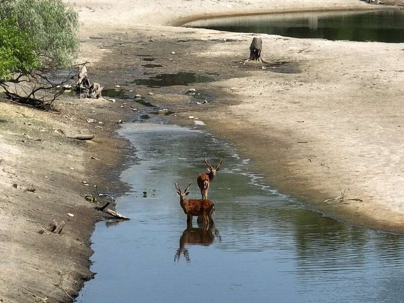 Господин Михаил рассказывает: на территории заповедника расположена так называемая Хортицкая пойма – понижение рельефа, в котором сформировались пойменные озера, проливы, разнообразные водоемы. Ранее, до эпохи водохранилища, эта территория во время половодья периодически наполнялась водой, а когда построили водохранилище, сформировалась пойма, где возникло ценное нерестилище, место гнездования водоплавающих птиц. И поскольку уровень поймы ниже плотины, после разрушения Каховской ГЭС 6 июня здесь началось стремительное снижение уровня воды.