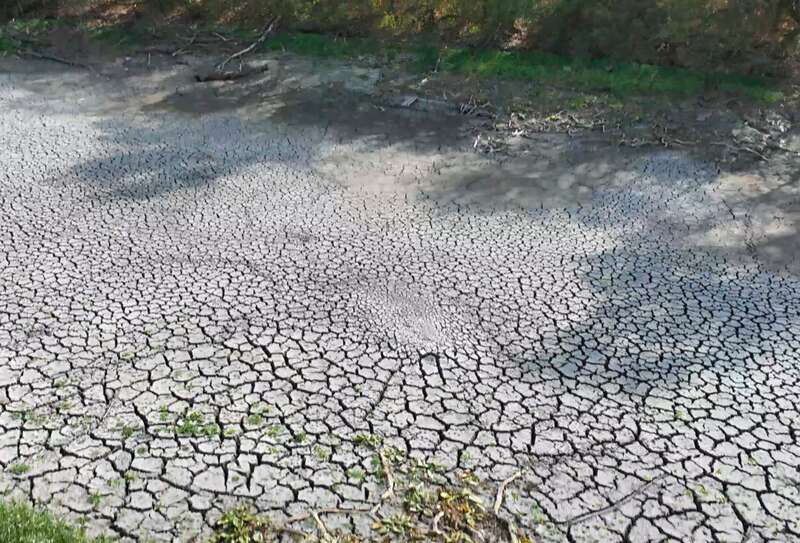 Обнаженное дно Каховского водохранилища на территории заповедника «Хортица» в июне 2023 г.