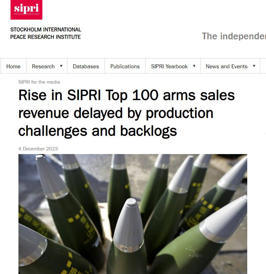 Об этом говорится в докладе Стокгольмского международного института исследования проблем мира (SIPRI), опубликованном в понедельник, 4 декабря. Все эти компании заработали 597 млрд долларов.