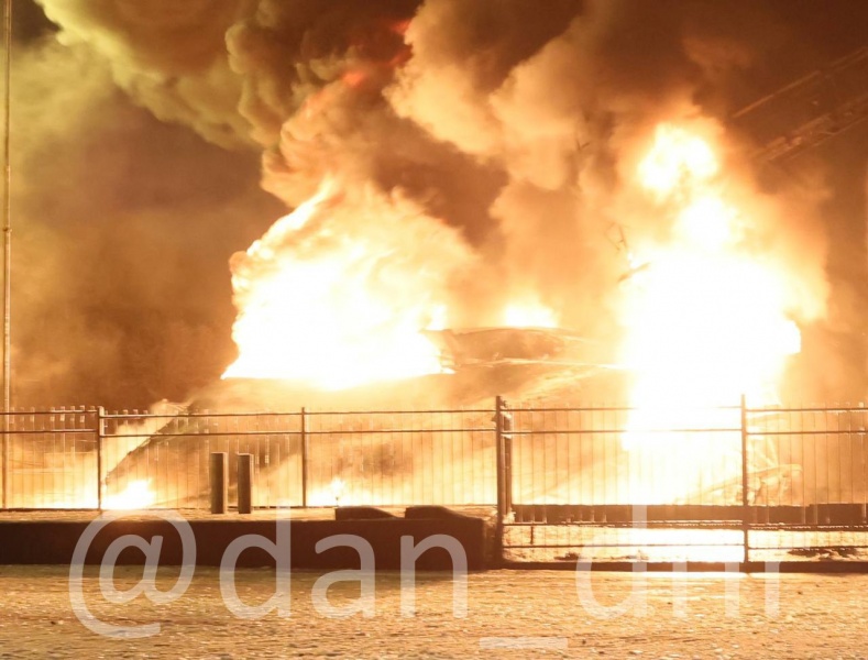 Telegram-каналы опубликовали фотографию последствий попадания по нефтебазе.