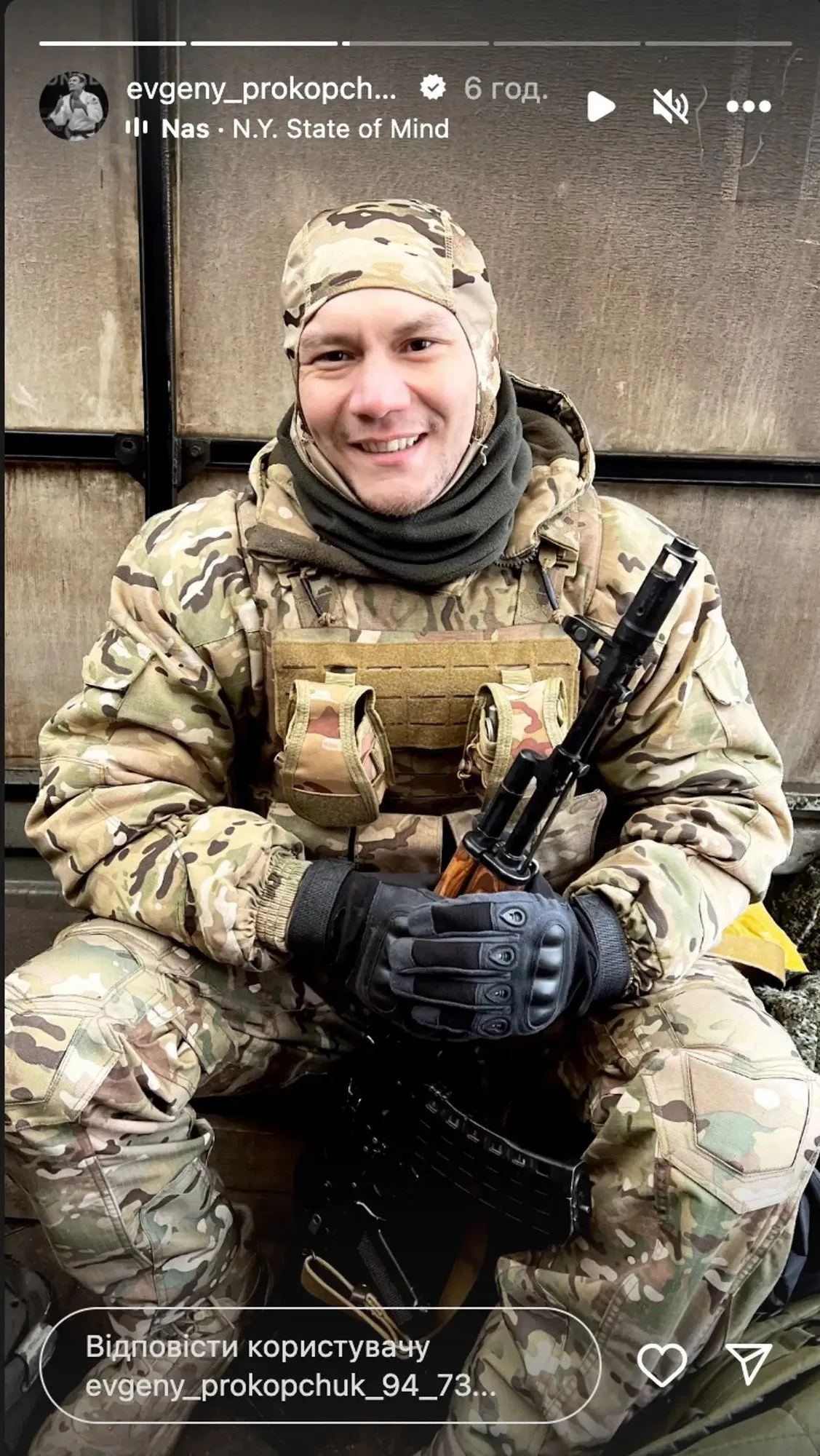 Победитель Всемирной летней Универсиады по дзюдо (2019) Евгений Прокопчук принимает участие в войне против Украины. Фотографии, на которых 29-летний уроженец Иркутска позирует в полной амуниции с автоматом, у себя в аккаунте соцсети X (бывший Twitter) изложил известный украинский скелетонист Владислав Гераскевич.